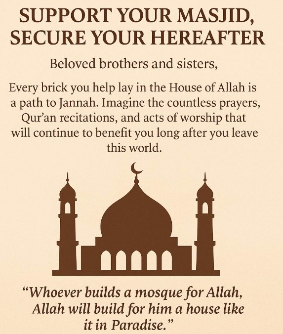 Alhamdulillah, our masjid serves as a spiritual home for our community, open every day for the five daily prayers, Jumu'ah, and various educational and community programmes.